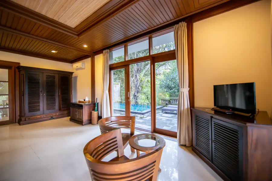 Private one-bedroom villa with spectacular views, king bed, seating area, spacious bathroom with shower and private pool. Mini-bar with tea or coffee maker, air-conditioning, DVD player, wide screen LCD TV with HDMI ready-input, IDD phone, in-room safety deposit box, bathrobe and slippers. Private veranda and garden pavilion.